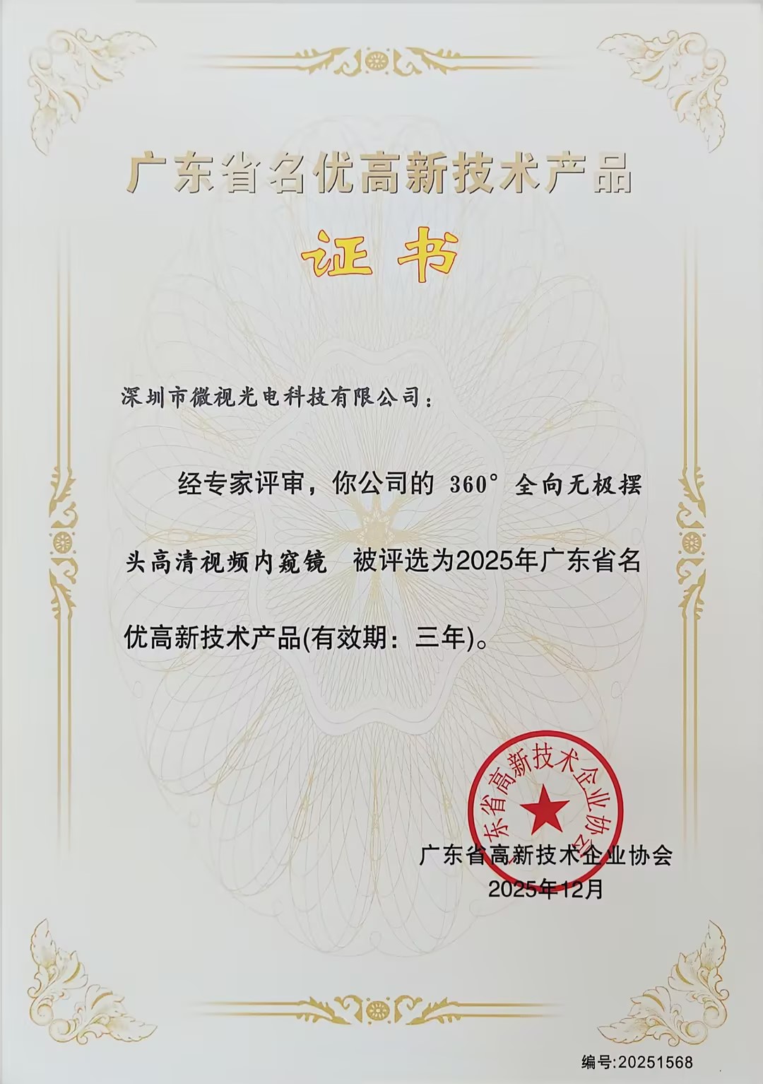 近日,深圳微視三款創(chuàng)新產(chǎn)品:耐高溫智控冷旋內(nèi)窺鏡、0.95mm超細(xì)工業(yè)級探視鏡以及360°全向無極擺頭高清視頻內(nèi)窺鏡,均榮獲“2025年廣東省名優(yōu)高新技術(shù)產(chǎn)品”稱號。這一認(rèn)證不僅是對微視光電技術(shù)實(shí)力的高度認(rèn)可,也標(biāo)志著公司在高新技術(shù)領(lǐng)域的又一重大突破。